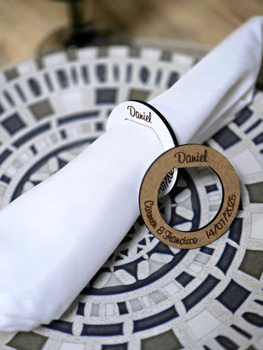 Nuestros marcasitios de boda caseros son un éxito asegurado. Combinan elegancia y funcionalidad, guiando a los invitados a su lugar mientras decoran la mesa con un toque romántico y sofisticado. Puedes personalizarlos con los nombres de los novios y la fecha, o con frases que representen su historia.