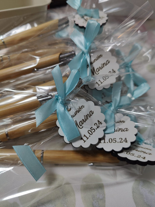 Agradece a tus seres queridos por acompañar a tu hijo/a en un día tan especial con detalles significativos como bolígrafos y lápices personalizados, tarjetas personalizadas con bombones, o marcasitios originales para cuando vayan a sentarse a su mesa. De esta manera se sentirán valorados por haber asistido al evento, y querrán involucrarse como si de niños se tratara.