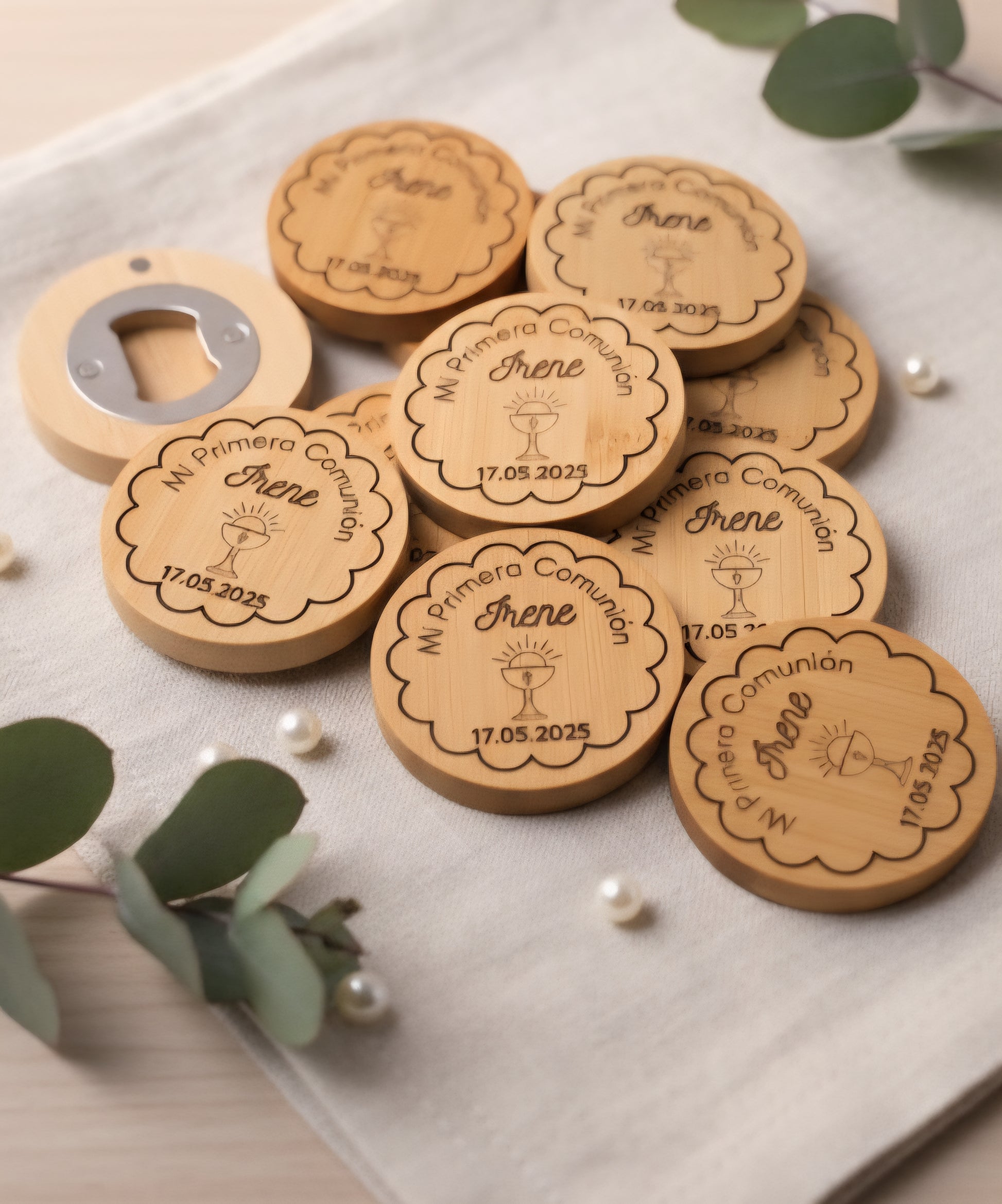 Laser-engraved bamboo bottle openers with the design of your choice, whether it's one of our templates or your own. (Please indicate the model number in the personalization box.) If you have any questions, please contact us.