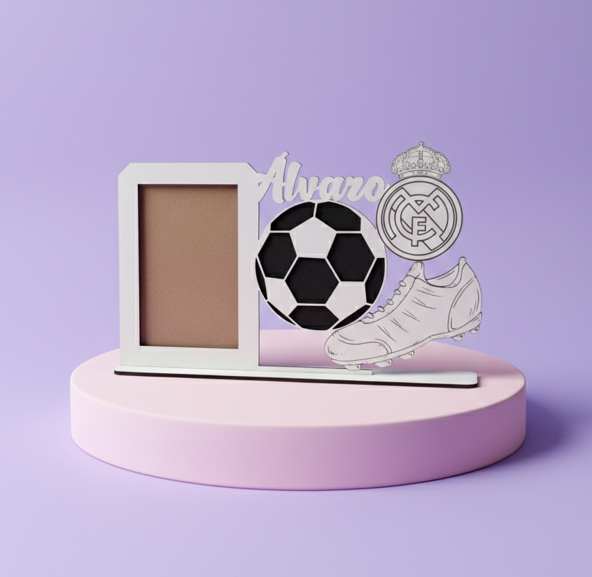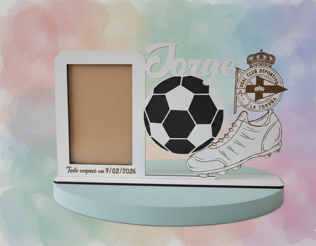 Personalized frame made of 3mm MDF wood with the name of your choice and the crest of your own team or your favorite team.