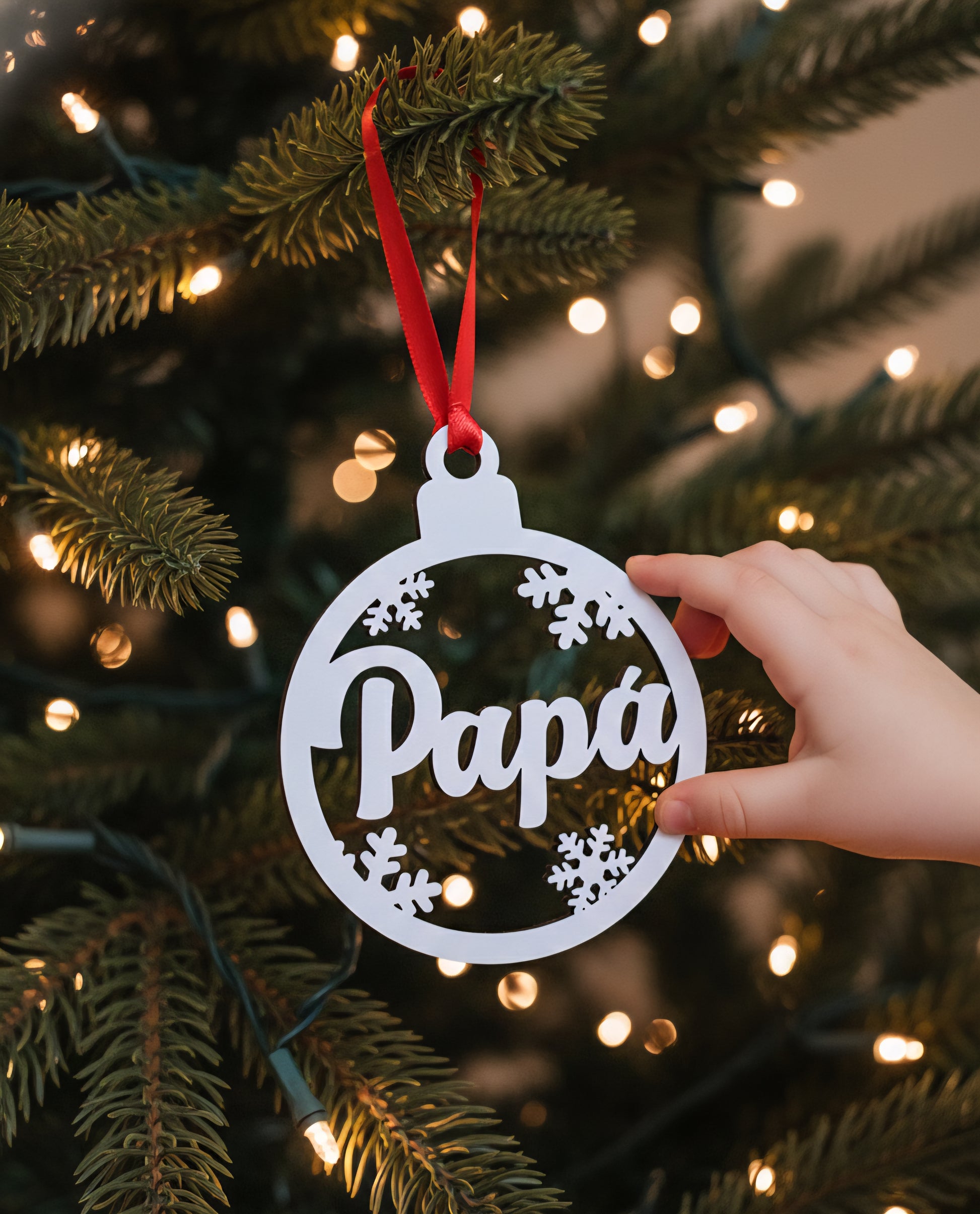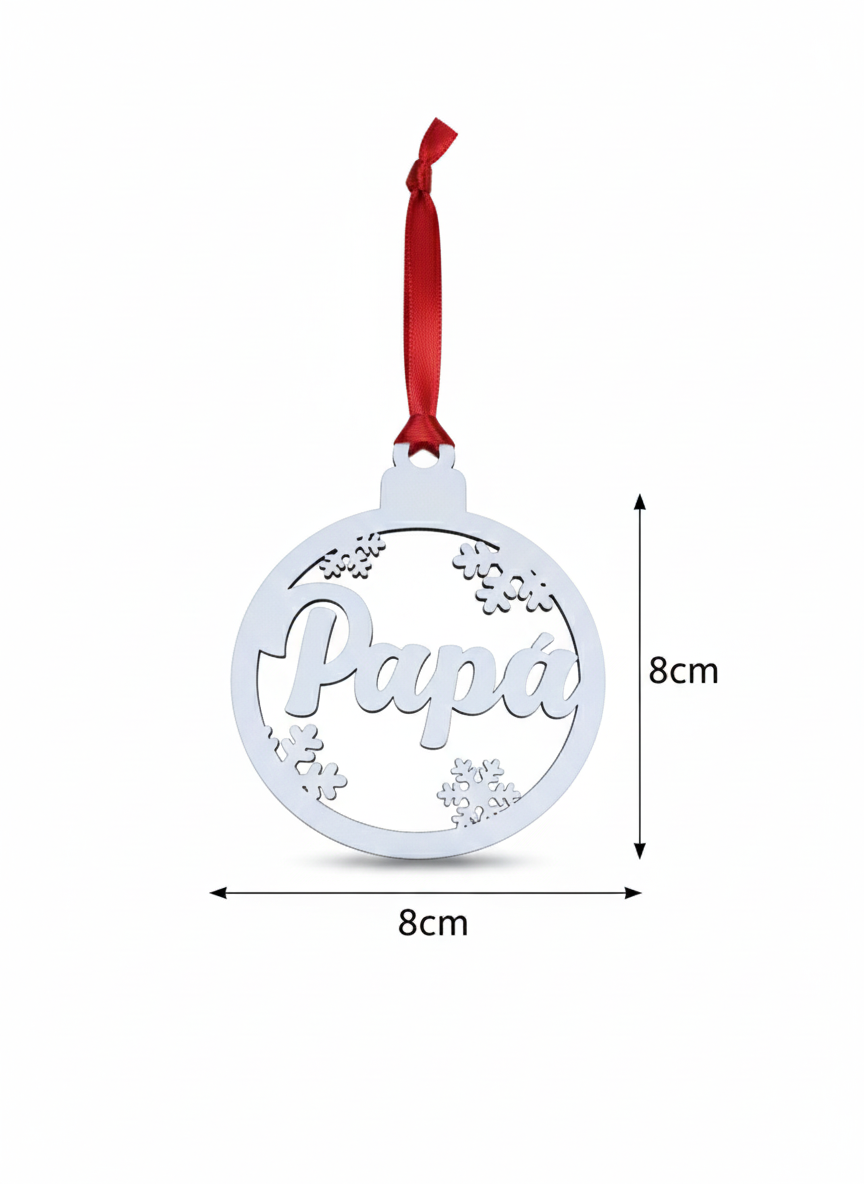 El diseño incluye un elegante lazo de raso, pero lo verdaderamente mágico es que puedes personalizar la bola de Navidad con los nombres de cada miembro de la familia, creando un recuerdo inolvidable. Es la manera perfecta de celebrar y tener presente a tus seres queridos en estas fiestas navideñas.