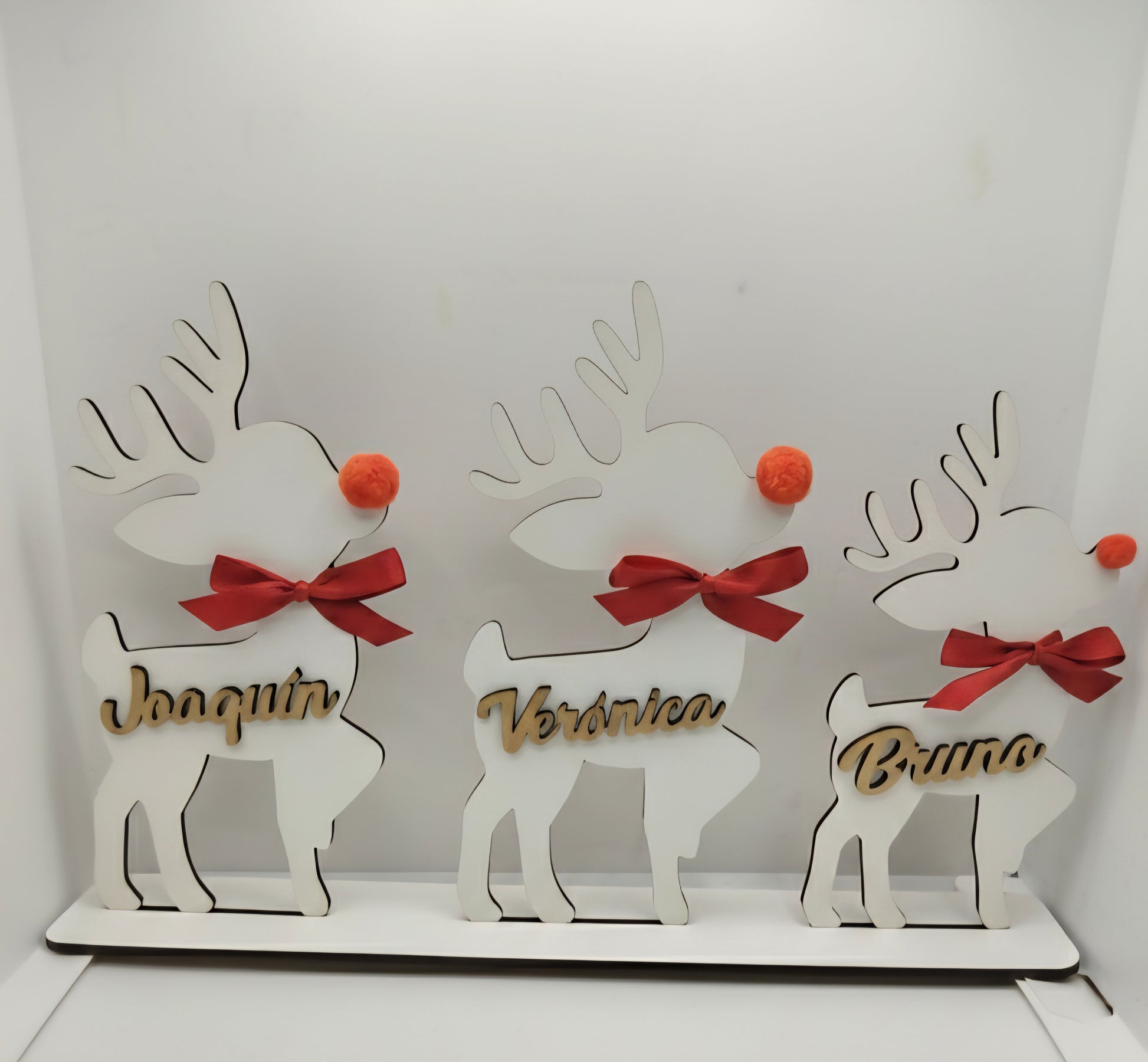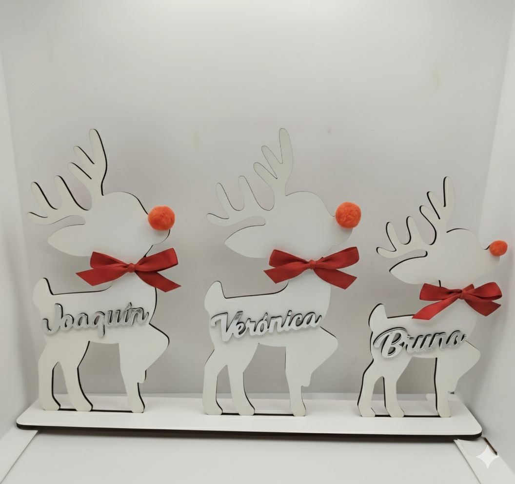 ¡Captura la magia de la Navidad con este precioso adorno familiar personalizado! 🦌 Este diseño de renos navideños es la decoración perfecta para tu hogar y un regalo inolvidable. Hecho de madera MDF blanca de alta calidad, incluye renos para cada miembro de la familia, desde 2 hasta 6 figuras, ¡incluso tu mascota! 🐾