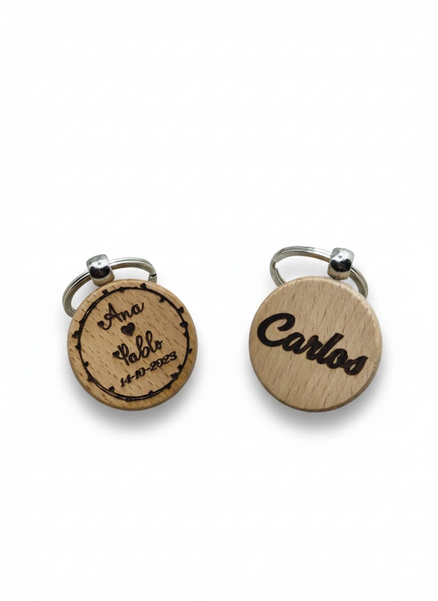 Llavero redondo de madera para detalles en bodas, bautizos, comuniones o eventos en general. Un regalo original y práctico para detalles a tus invitados hombres o mujeres.