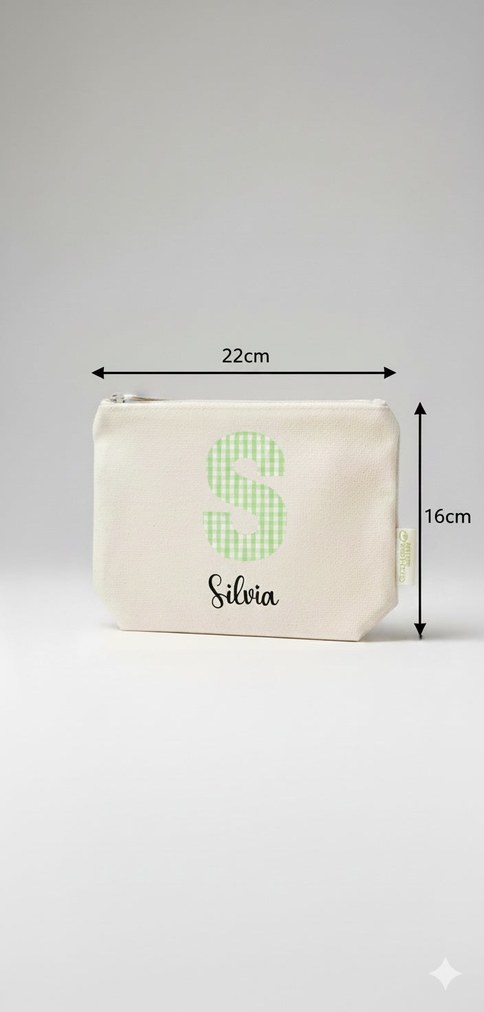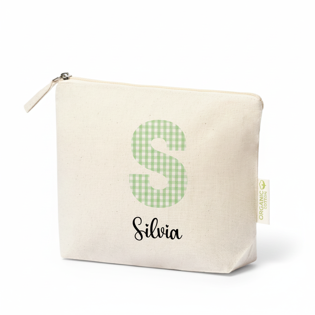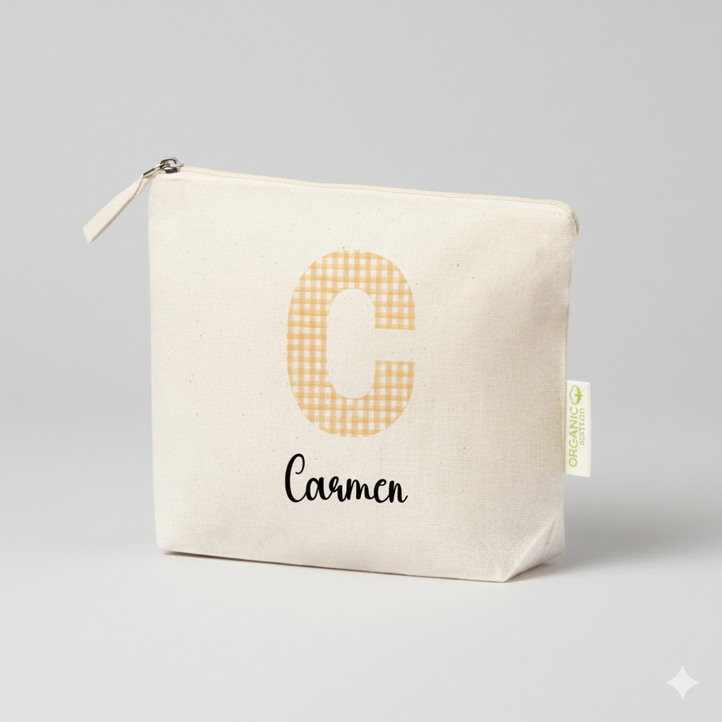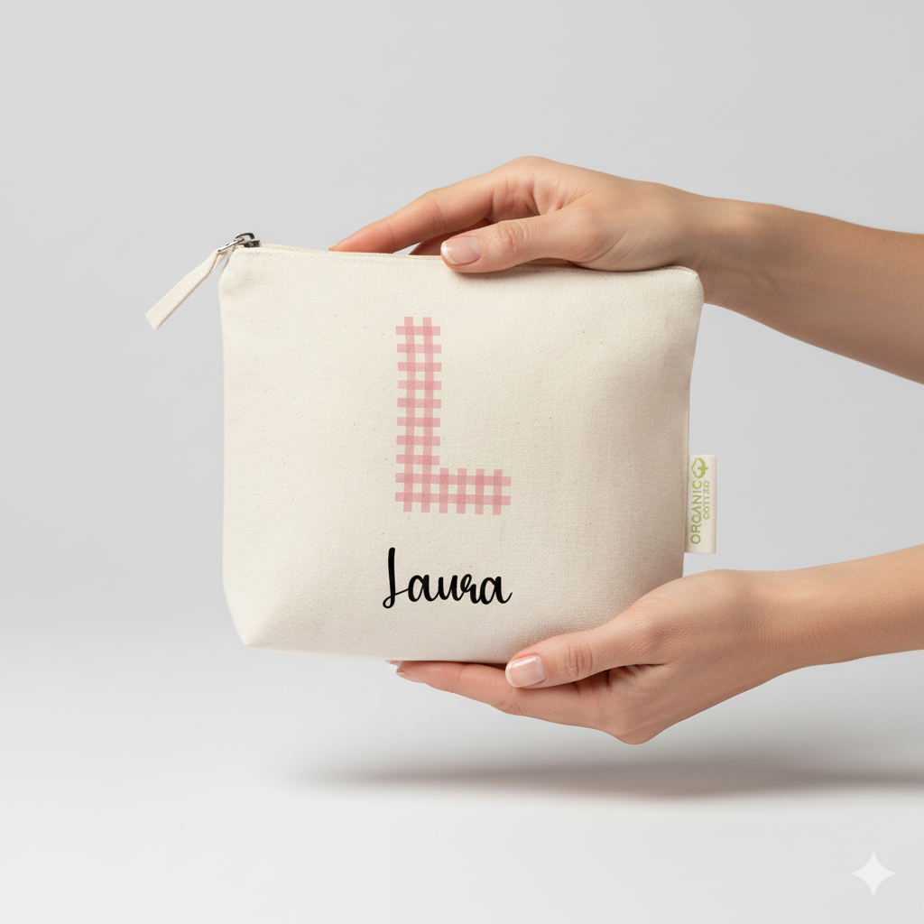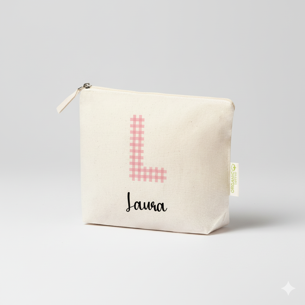 Personalización Total: Cada neceser incluye la inicial en estampado Vichy (5 colores a elegir) y el nombre que desees.