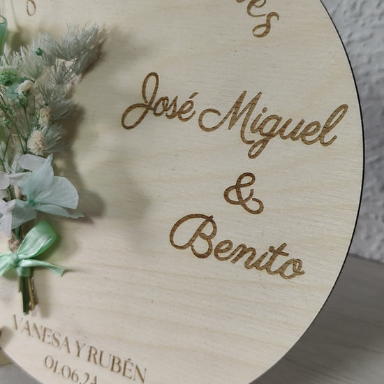 ¡Celebra el amor con nuestra placa redonda de madera personalizada con flores preservadas, grabada a láser para los próximos en casarse!