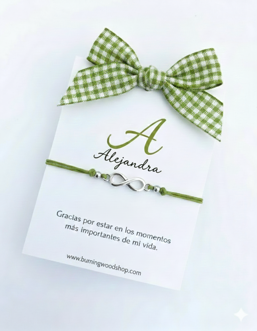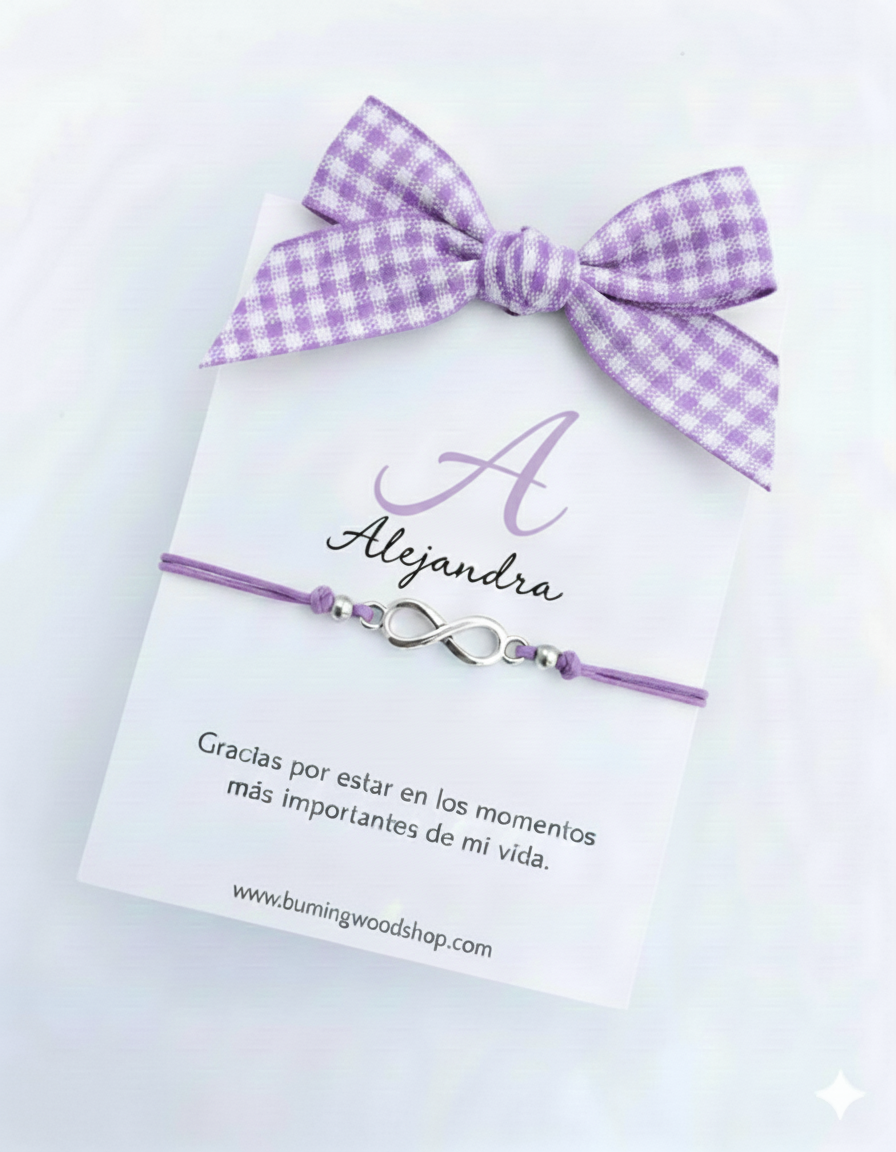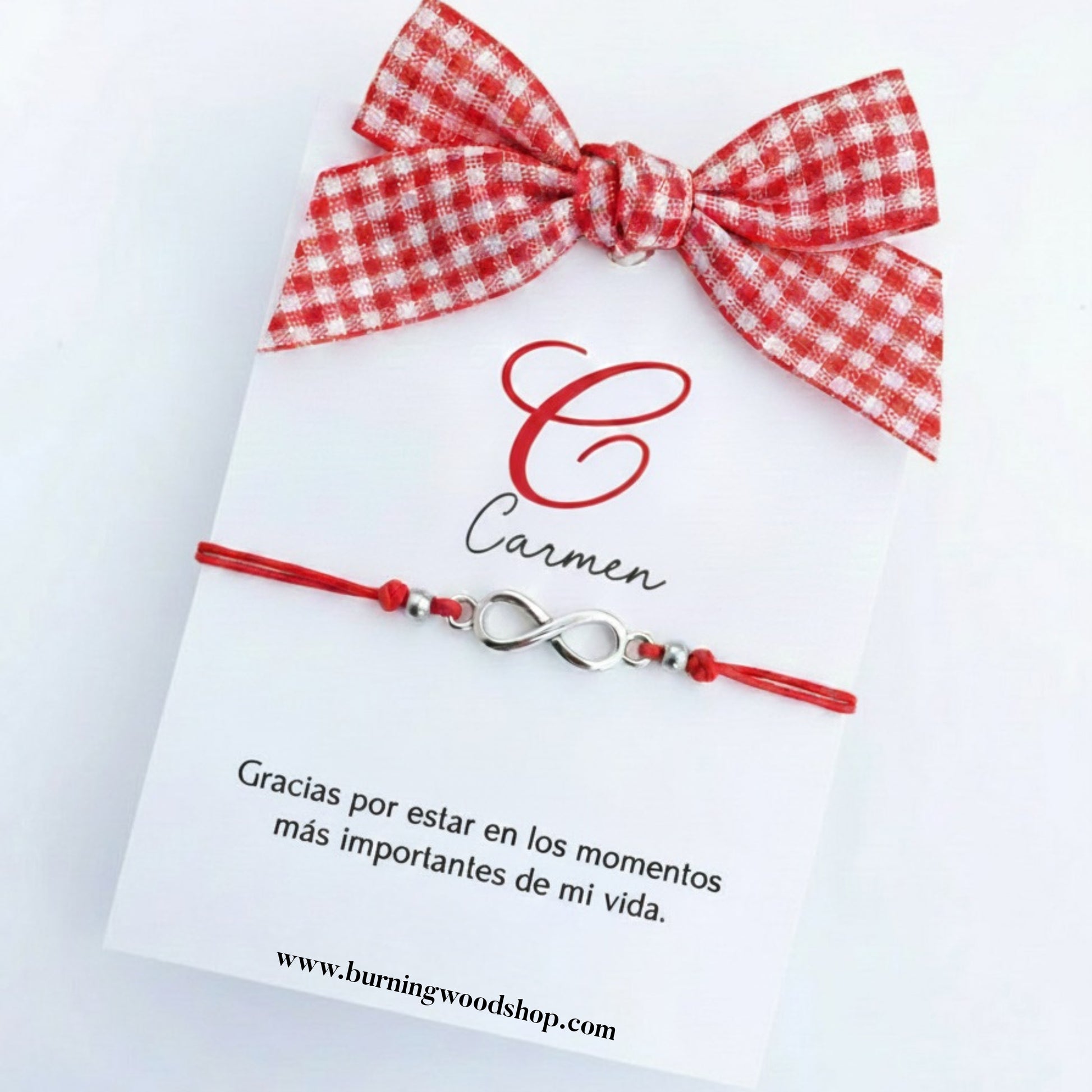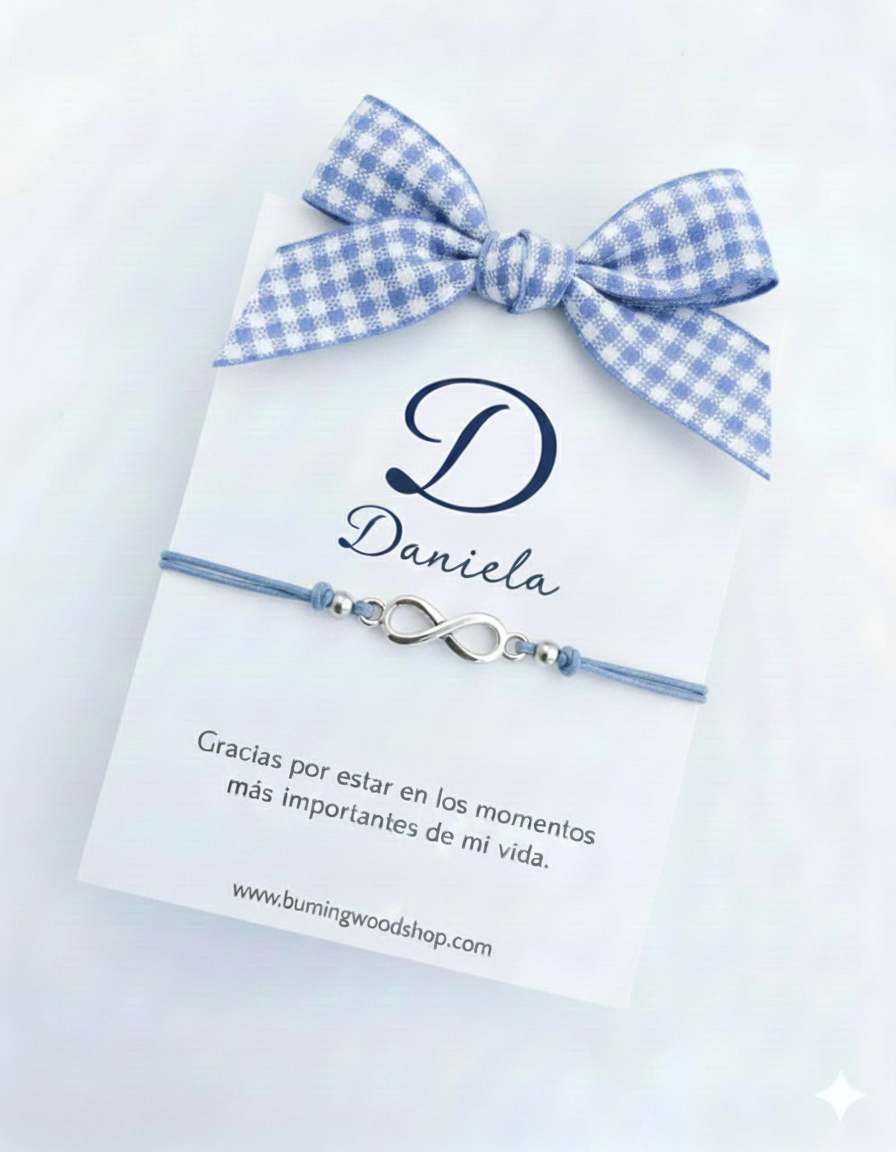 Regala un símbolo de gratitud con nuestra pulsera de infinito hecha a mano. Es el detalle para invitados ideal en bodas, bautizos, comuniones o eventos corporativos, representando los lazos eternos que nos unen.